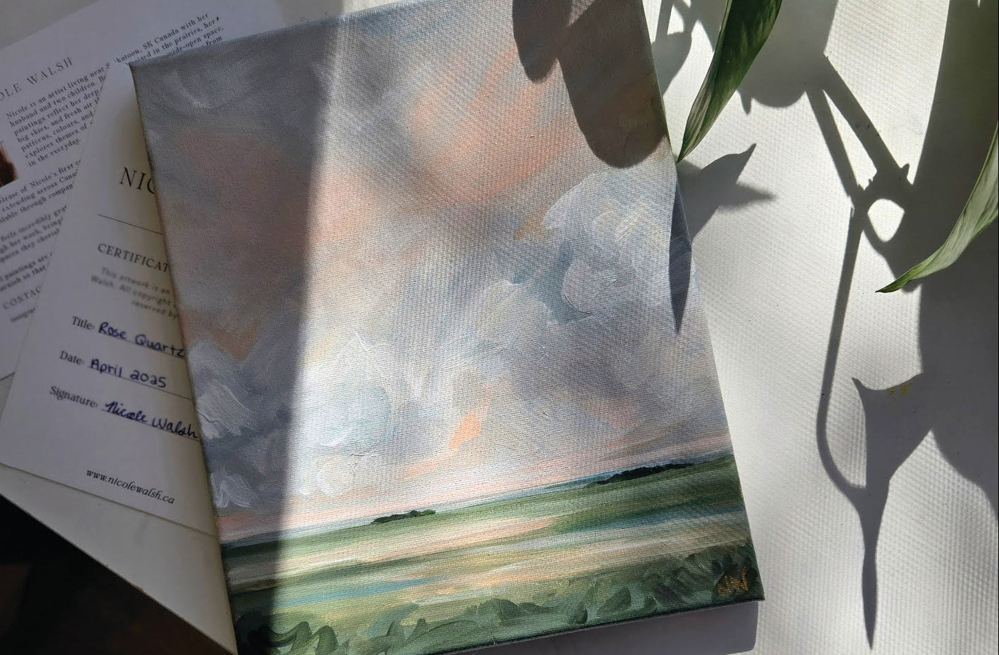 Nicole Walsh is a Canadian artist whose work invites calm, connection, and presence. She creates layered, intuitive pieces from her studio near Saskatoon.